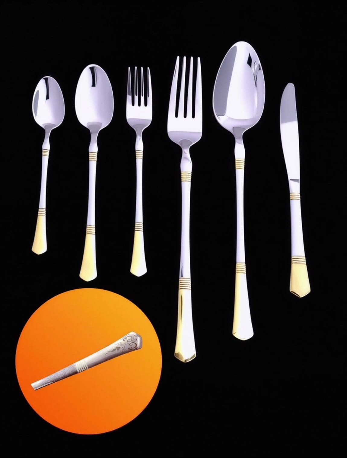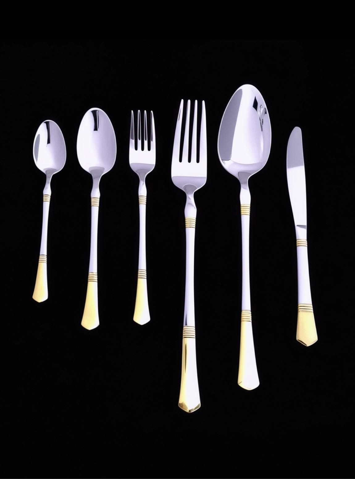 Gold gümüş desen işlemeli çelik ithal çatal kaşık bıçak takımı